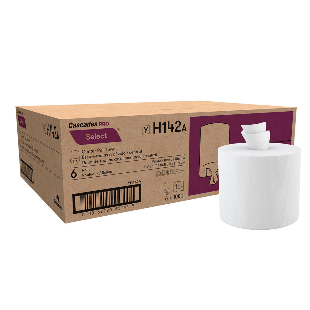 Les essuie-tout Cascades PRO Select 1 pli à dévidage central haute capacité allient qualité et pouvoir absorbant, tout en réduisant le gaspillage à chaque feuille. Ces essuie-tout blancs sont parfaits pour les petites installations et les ateliers de production, ainsi que pour les espaces publics très fréquentés et les cuisines. Leur distribution à l'unité limite la contamination croisée et réduit la propagation des germes. Fabriqués à partir de fibres 100 % recyclées, ces essuie-tout offrent une solution efficace, économique et durable.