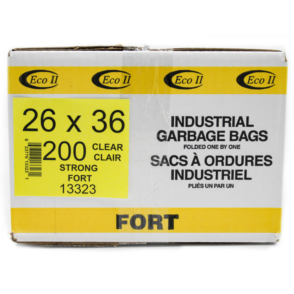 Sacs à déchets Eco II, solides, transparents, 26 x 36 po, paquet de 200