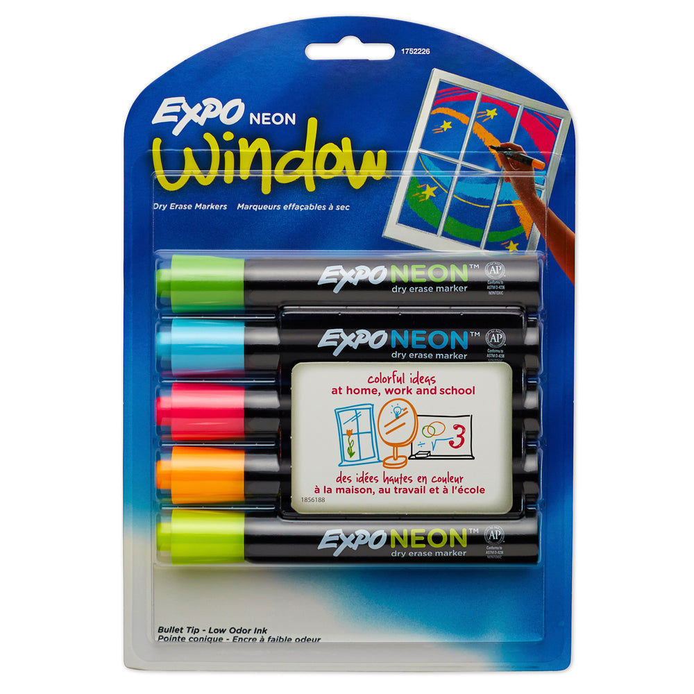 Marqueurs effaçables à sec Expo Neon pour vitres, pointe ogive, paquet de 5