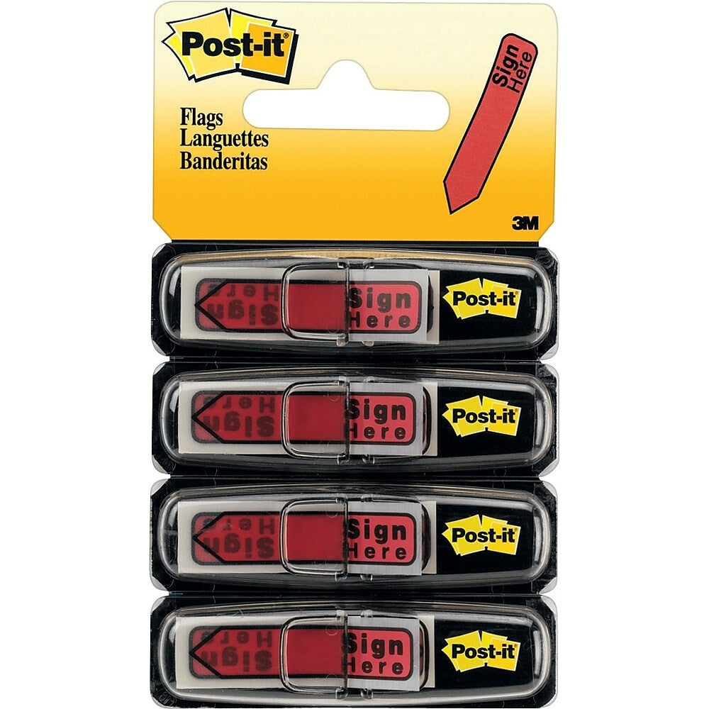 Drapeaux Post-it, flèches « Sign Here », 1/2 », rouge, paquet de 80