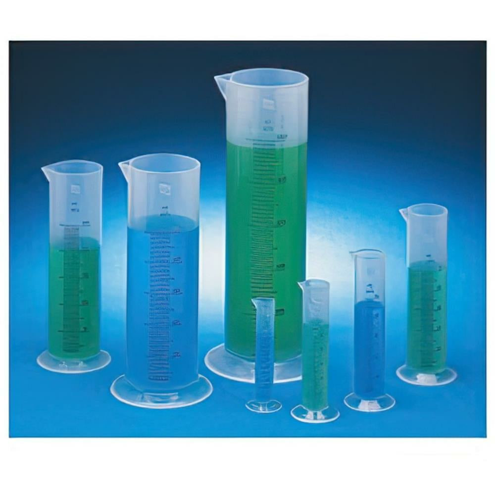 Sept éprouvettes graduées en plastique, faciles à lire, en polypropylène transparent et durable, avec graduations en relief pour une mesure aisée. Idéales pour tous les calibres grâce à leurs bases larges et stables. Résistantes aux produits chimiques et aux acides, elles sont autoclavables et micro-ondable. Contenu : 10 ml, 25 ml, 50 ml, 100 ml, 250 ml, 500 ml et 1 000 ml.