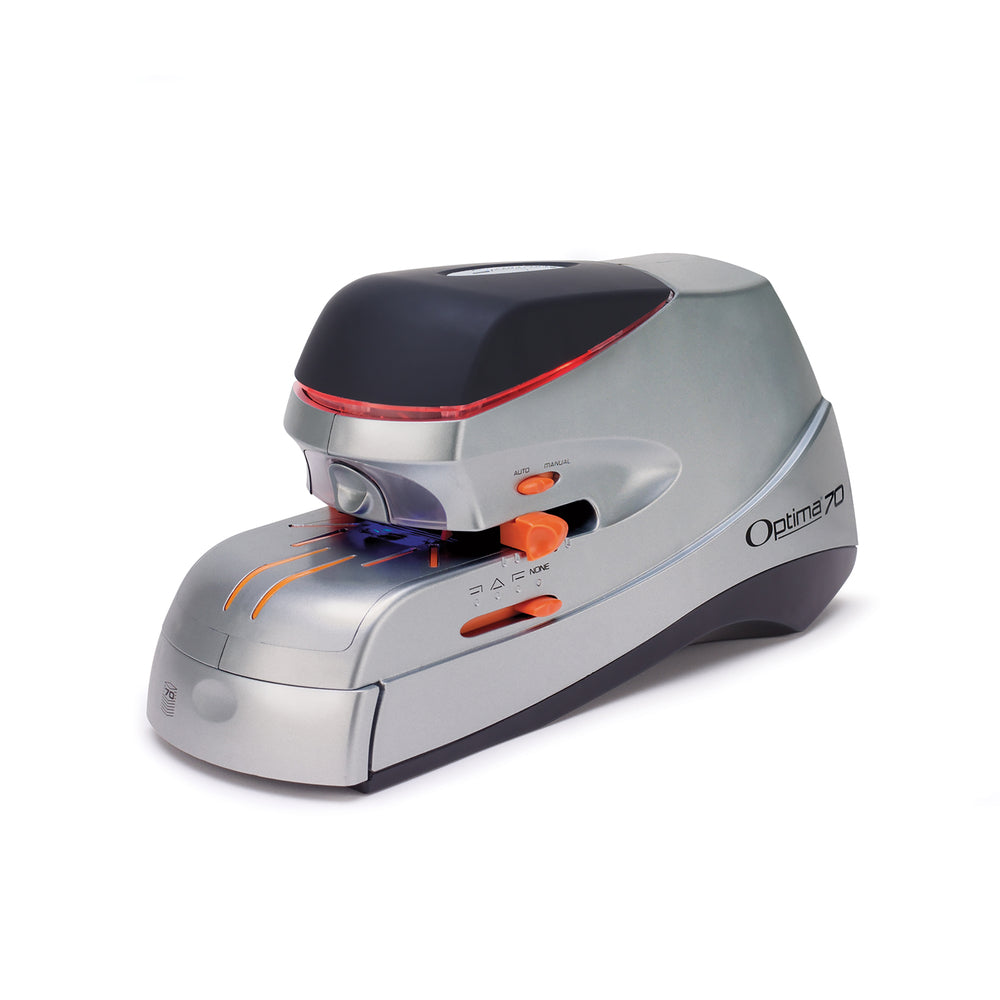 Quiet yet powerful, the heavy duty Swingline Optima 70 Stapler can staple as few as 2 sheets or as many as 70 sheets with the same type of staple. This model with both automatic and manual operation always delivers Jam Free stapling and the flat clinch design forms staples flat on the back of your paper so stacks of stapled documents stay neat and do not topple over. To this day, a Swingline stapler can be seen across homes and offices as the reliable choice for everyday stapling.
