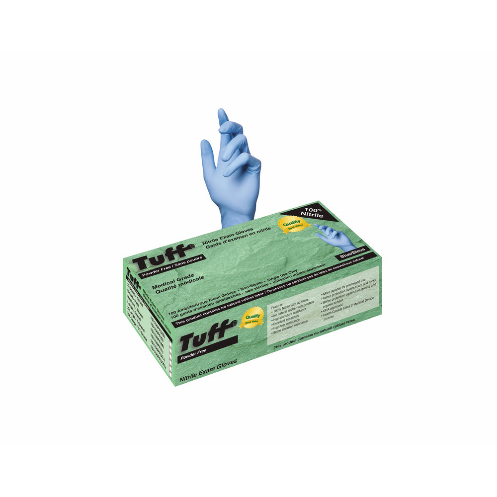 Tuff Powder-Free Disposable Nitrile Gloves - XL - Blue - 100 Pack